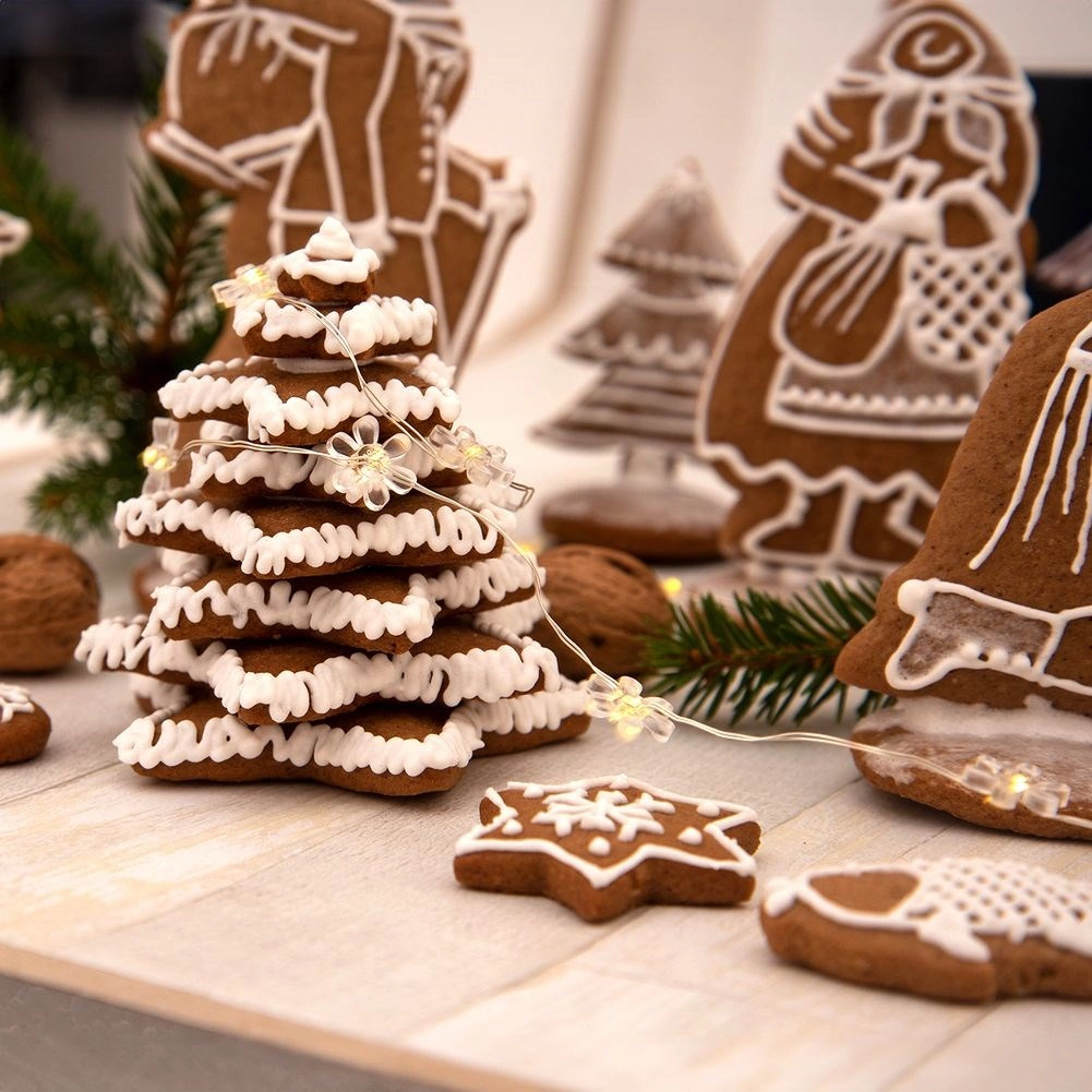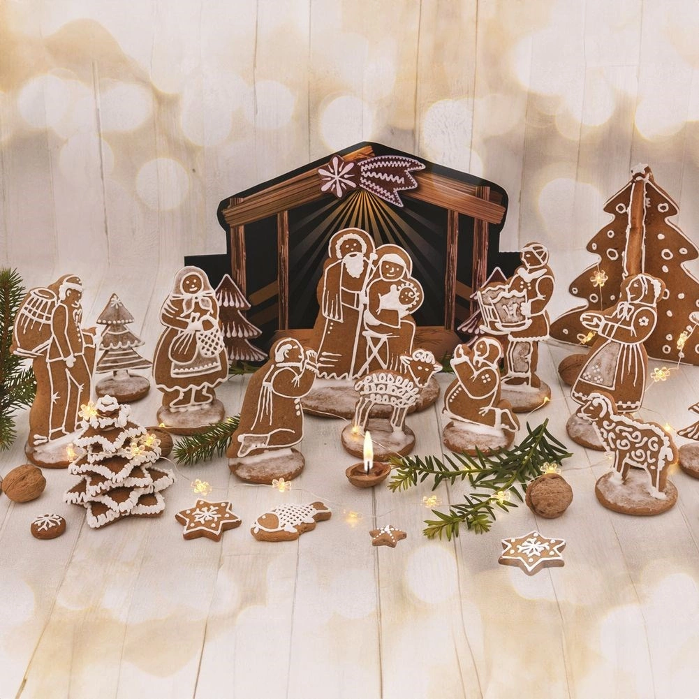 Z zestawem świątecznych foremek z łatwością wytniesz dokładne kształty postaci i zwierzątek z szopki, tworząc oryginalną świąteczną dekorację oraz pyszne wypieki. Szerokość poszczególnych foremek to ok. 2–9 cm, a długość 7–12 cm – idealne do pierniczków i ciasta na ciasteczka. Kolorowe tekturowe tło pomaga dopełnić całą scenę.