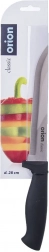 Niezawodny nóż kuchenny do codziennej pracy w kuchni. Dzięki ostremu ostrzu ze stali nierdzewnej z łatwością i precyzyjnie pokroisz owoce, warzywa i mięso, w tym twardsze kawałki. Ergonomicznie ukształtowana rękojeść z wytrzymałego plastiku w kolorze czarnym zapewnia pewny i stabilny chwyt bez ślizgania.