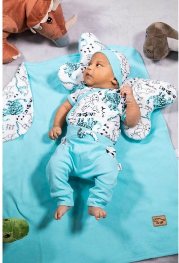 Dzięki krojowi w stylu chustki wygląda nowocześnie, a jednocześnie chroni główkę przed przeciągiem. Nadruk dinozaurów ucieszy małych miłośników wesołych motywów i dopełni strój zarówno na spacery, jak i w domu.