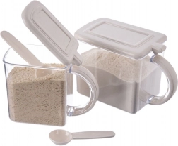 Dla maksymalnej wygody pojemnik ma ergonomiczny uchwyt do łatwego przenoszenia, praktyczną łyżeczkę do precyzyjnego dozowania oraz pokrywkę na zawiasie, która wygodnie się otwiera i skutecznie chroni zawartość przed wilgocią. Pomoże utrzymać porządek w kuchni w domu i w gastronomii.