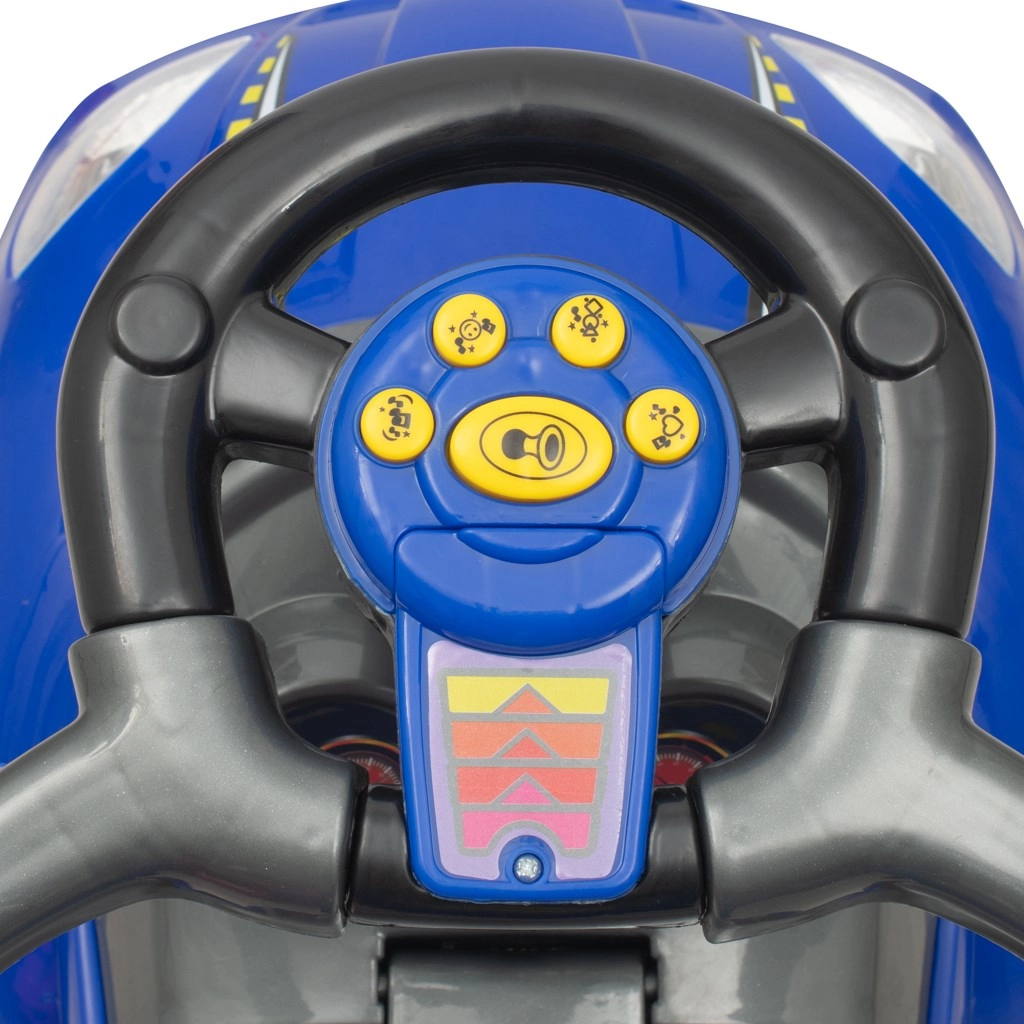 Kierownica z panelem muzycznym i klaksonem wspiera rozwój zmysłów i małej motoryki oraz uatrakcyjnia każdą przejażdżkę.