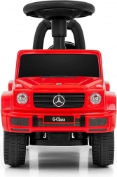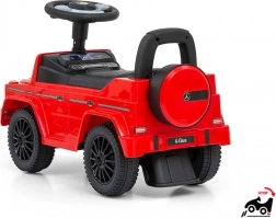 Stylowy dziecięcy jeździk MERCEDES G‑Class G350d z licencją MERCEDES zachwyca realistycznym wyglądem, bezpieczną stabilnością oraz komfortowym siedziskiem ze schowkiem. Oferuje obrotowe przednie koła, trójramienną kierownicę z melodiami, dźwiękiem silnika i klaksonem oraz solidną konstrukcję z metalowymi osiami. Idealny do rozwoju motoryki dzieci od 12 do 36 miesięcy, z udźwigiem 25 kg i certyfikatem CE.