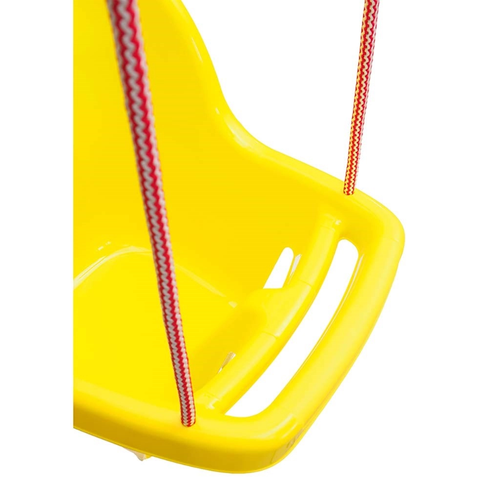 Bezpieczne i wygodne huśtanie dla najmłodszych. Ta żółta dziecięca huśtawka oferuje wysokie oparcie, trwały, nieblaknący plastik oraz regulowane liny do łatwego zawieszenia w domu i w ogrodzie. Odpowiednia dla dzieci od 2 lat, z maksymalnym obciążeniem 30 kg.