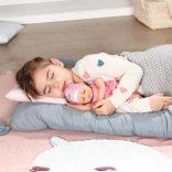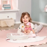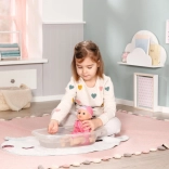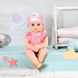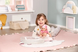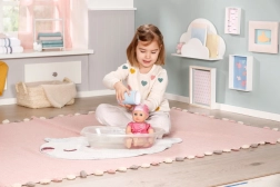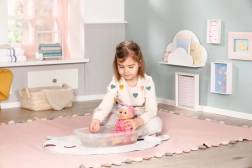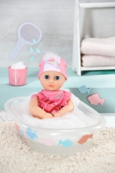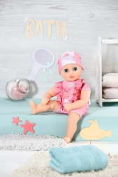 Lalka Baby Annabell została zaprojektowana tak, aby przynosić radość podczas zabawy w wodzie i poza nią. Jej ciałko o wielkości 30 cm jest uszyte z tkaniny, natomiast ręce, nogi i głowa są wykonane z miękkiego winylu, co gwarantuje bezpieczną i przyjemną zabawę.