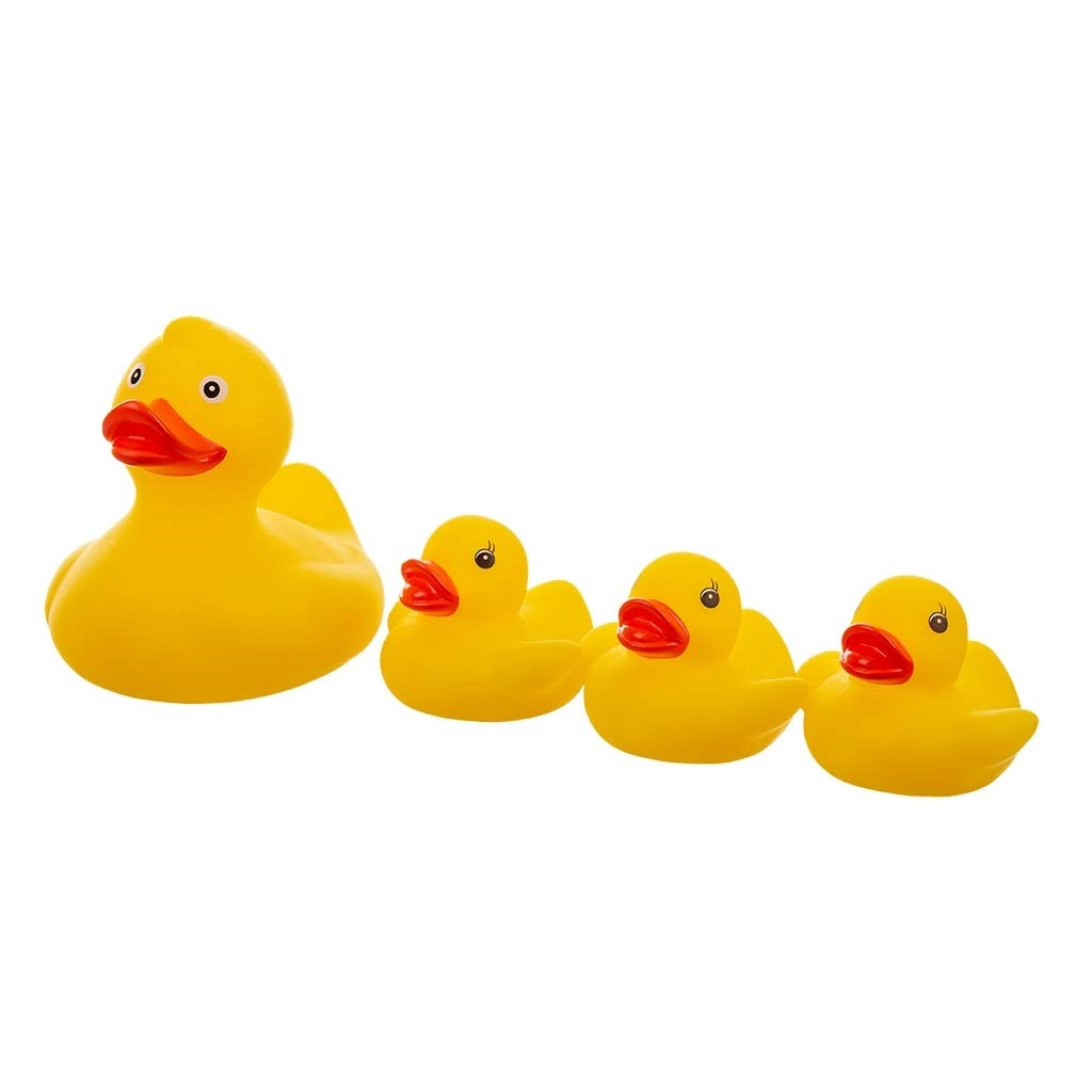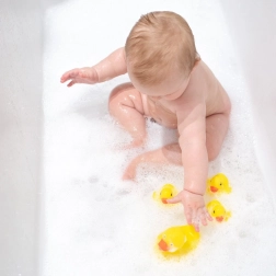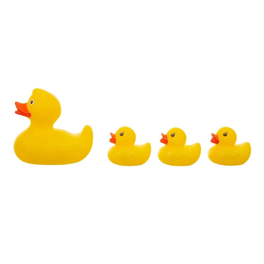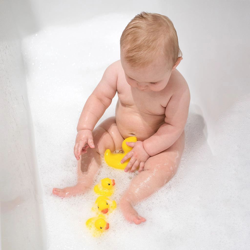 Uroczy zestaw do kąpieli dla małych odkrywców: jedna duża kaczka i trzy kaczuszki dla niekończącej się zabawy w wannie. Zabawki pływają na powierzchni wody, mają otwór do pryskania, a ich zaokrąglone kształty i bezpieczne materiały bez BPA zapewniają spokojną i bezpieczną zabawę wśród bąbelków.