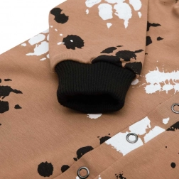 Ten musztardowy kombinezon NEW BABY z radosnym, całopowierzchniowym dziecięcym wzorem został zaprojektowany z myślą o maksymalnej wygodzie maluszka. Miękki bawełniany dżersej z domieszką elastanu przyjemnie dopasowuje się, a bawełniana podszewka zapewnia przyjemne ciepło bez zbędnego przegrzewania. Dzięki zapięciu na napy na całej długości ubieranie i przewijanie jest szybkie i łatwe.