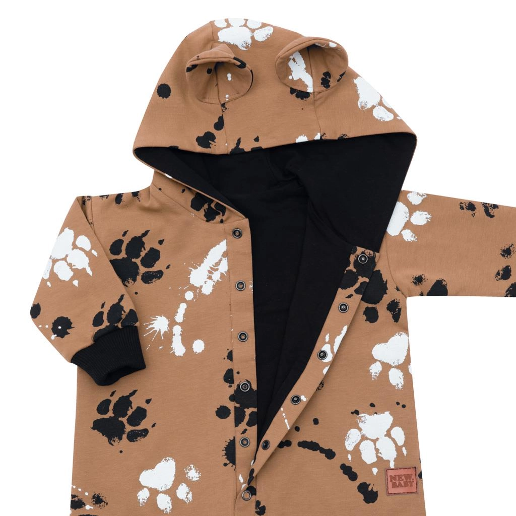 Kombinezon niemowlęcy New Baby łapka w musztardowym kolorze zachwyca miękkim, gładkim materiałem i wygodnym krojem. Kaptur z uszkami dodaje uroku, a ocieplana bawełniana podszewka zwiększa komfort termiczny w chłodniejsze dni. Dzięki napom na całej długości ubieranie i przewijanie jest szybkie i bezproblemowe.