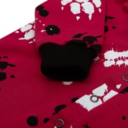 Ciepły niemowlęcy pajac NEW BABY Paw w ciemnoróżowym kolorze zachwyca wesołym nadrukiem łapek i przemyślanym wykonaniem. Miękka i oddychająca bawełna z domieszką elastanu jest przyjemna w noszeniu, nie uciska i świetnie dopasowuje się do ruchów dziecka. Cała wewnętrzna strona jest podszyta bawełnianą podszewką dla większego komfortu i stałego ciepła.
