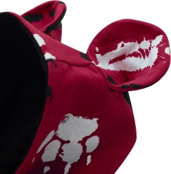 Kaptur z miękkimi uszkami i wesołym nadrukiem łapek dodaje pajacowi uroku i chroni przed chłodem.