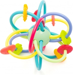 Ten multifunkcyjny gryzak z delikatną grzechotką przynosi dzieciom ulgę podczas wyrzynania się ząbków, a jednocześnie angażuje ich zmysły. Miękkie elementy masują dziąsła, natomiast grzechotka stymuluje słuch i pomaga rozwijać koordynację oko–ręka. Dzięki lekkiej konstrukcji i przemyślanemu kształtowi dziecko łatwo go chwyta pod dowolnym kątem.