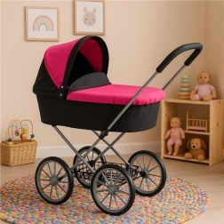 Retro wózek dla lalek PlayTo Betty łączy klasyczny wygląd z nowoczesną funkcjonalnością. Dzięki starannemu wykonaniu, wytrzymałej ramie i dużym szprychowym kołom świetnie sprawdzi się w codziennej zabawie w domu i na zewnątrz. Składana budka chroni lalkę lub pluszaka i tworzy przytulne miejsce do bezpiecznej przejażdżki.