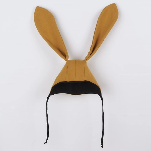Czapeczka jest wykonana z wysokiej jakości bawełny z elastanem, dzięki czemu jest elastyczna, dobrze trzyma kształt i łatwo się zakłada. Wiązanie na sznureczki zapewnia bezpieczne i stabilne utrzymanie bez zsuwania. Neutralny brązowy kolor pasuje do każdego stroju, a uszka dodają uroczego wyglądu.