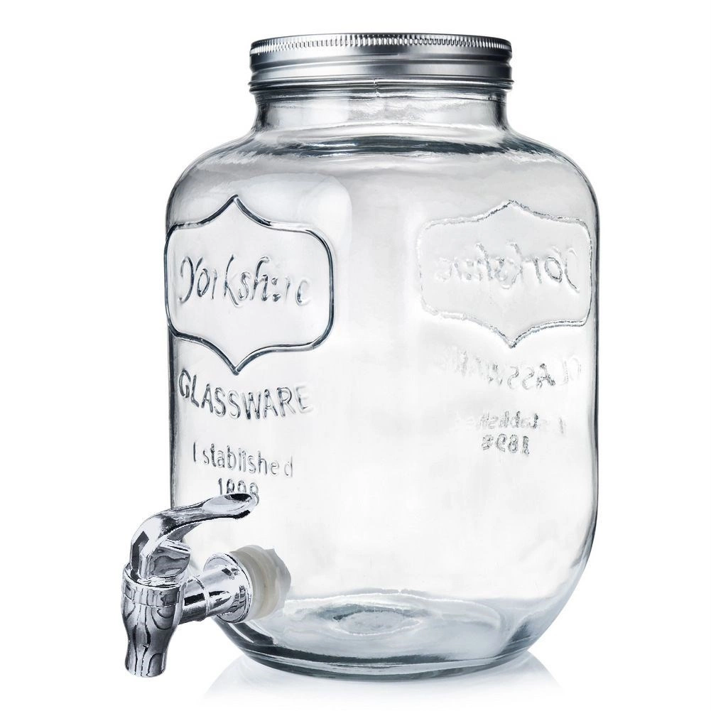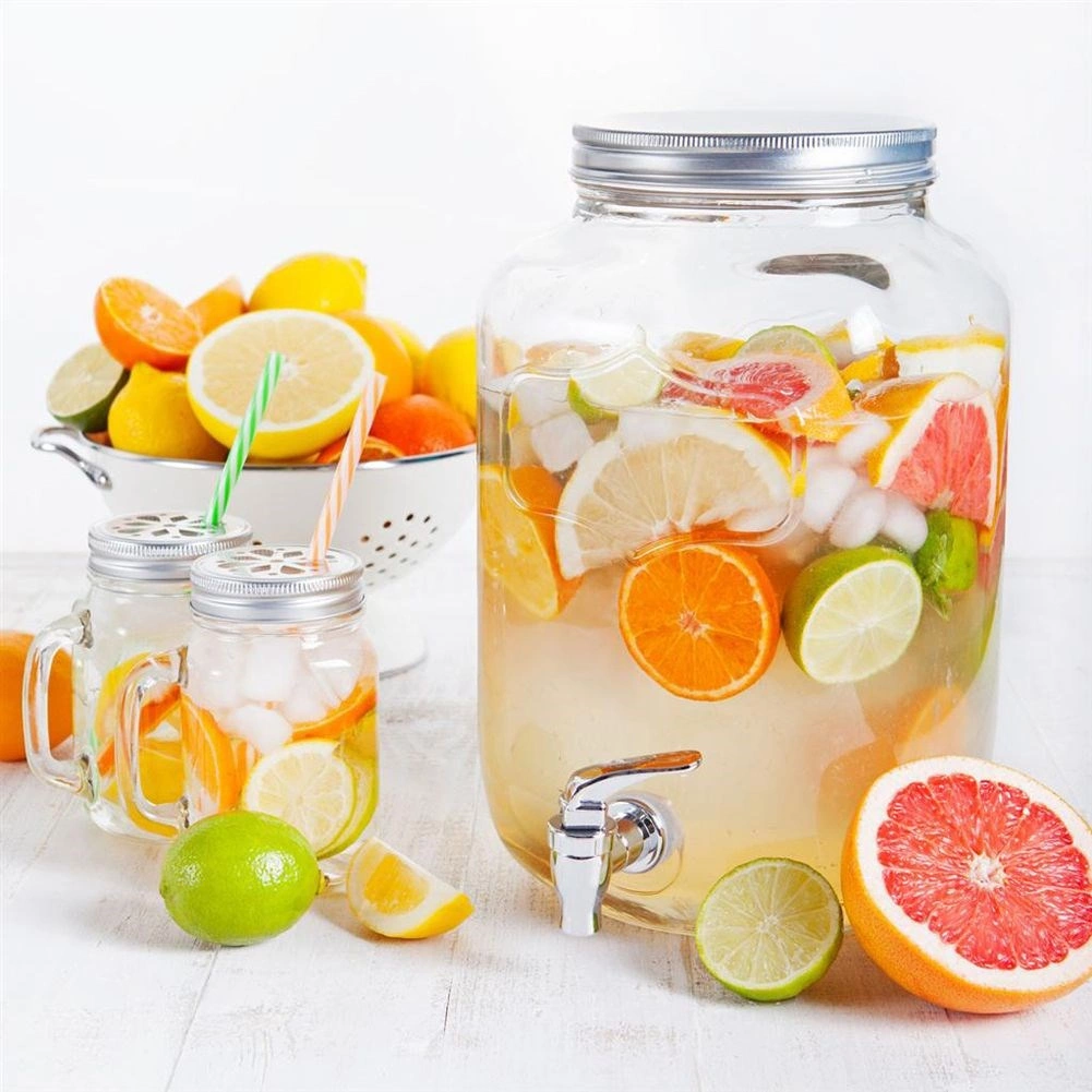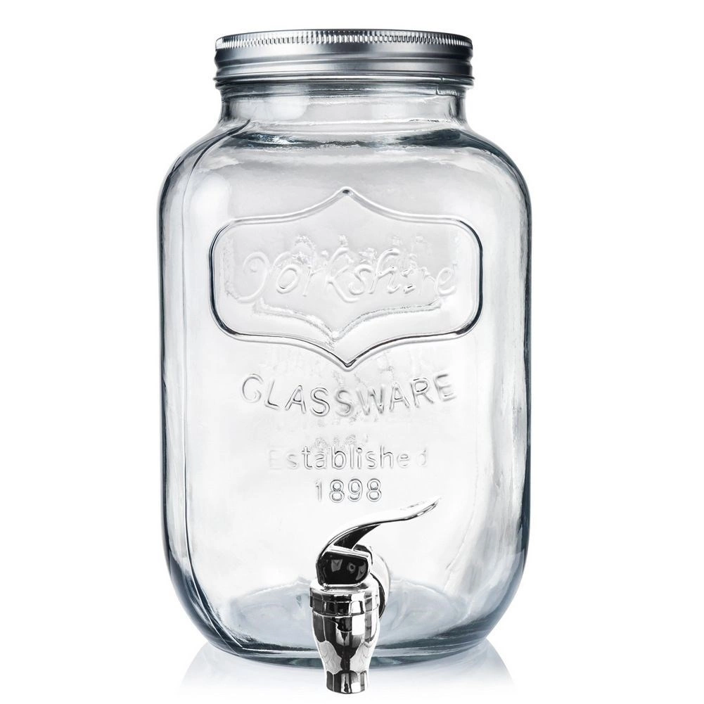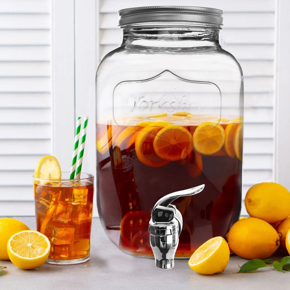Stylowy szklany dyspenser do napojów o pojemności 4 l z metalową pokrywką i praktycznym kranikiem dla wygodnego nalewania. Idealny do lemoniady, wód owocowych, ponczu czy iced tea. Ma szeroki wlew dla łatwego napełniania i czyszczenia, bezpieczne materiały do kontaktu z żywnością oraz zamykana pokrywkę, która chroni napój przed owadami.