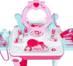 Odkryj magiczny świat makijażu i wyobraźni z dziecięcą toaletką w walizce 2w1 BABY MIX. Po otwarciu podróżna walizka zamienia się w stabilną toaletkę z lustrem w kształcie serca, które po naciśnięciu świeci i wydaje delikatny dźwięk. Zabawka doskonała do odgrywania ról, wspiera motorykę małą i rozwija kreatywność dzieci.
