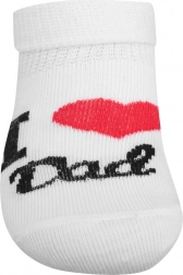 Dzięki starannemu wykonaniu skarpetki zachowują kształt i kolor nawet po częstym praniu. Uniwersalny design z napisami „I ♥ Mum” i „I ♥ Dad” pasuje zarówno dziewczynkom, jak i chłopcom, czyniąc skarpetki świetnym pomysłem na prezent.