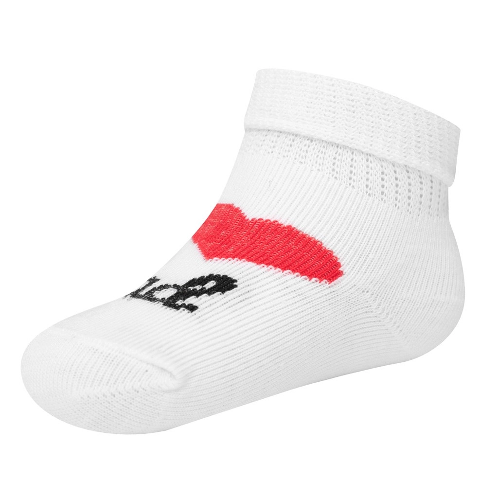 Te białe niemowlęce skarpetki NEW BABY z wysokiej jakości bawełny są delikatne dla wrażliwej skóry i idealne do codziennego użytku – do wózka, do spania oraz jako uroczy dodatek do stroju. Elastyczny ściągacz nie uciska, a jednocześnie pewnie trzyma skarpetkę na miejscu, natomiast miękka, oddychająca dzianina zapewnia całodzienny komfort.