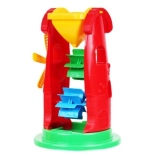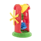 Zapewnia podwójne możliwości zabawy – dzieci mogą sypać piasek lub nalewać wodę i obserwować, jak kółka się kręcą.
