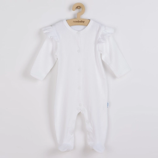 Pajacyk NEW BABY Practical został zaprojektowany z myślą o codziennym komforcie maluszka. Delikatna i wysokiej jakości bawełna jest oddychająca, nie podrażnia skóry, a dzięki przemyślanemu krojowi plecy dziecka pozostają zakryte przy każdym ruchu. Nowoczesny paskowy wzór i neutralny biały kolor w wersji dla dziewczynek doskonale pasują do garderoby noworodków i większych niemowląt.