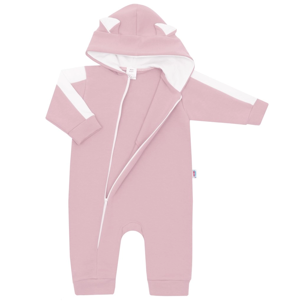 Ten różowy niemowlęcy kombinezon to idealny wybór dla wygody i stylu. Dzięki zapięciu na długi zamek na całej długości maluszek ubiera się szybko i bez konieczności przekładania przez główkę. Podszyty kaptur z uroczymi uszkami nadaje kombinezonowi figlarny wygląd i jednocześnie chroni przed chłodem.