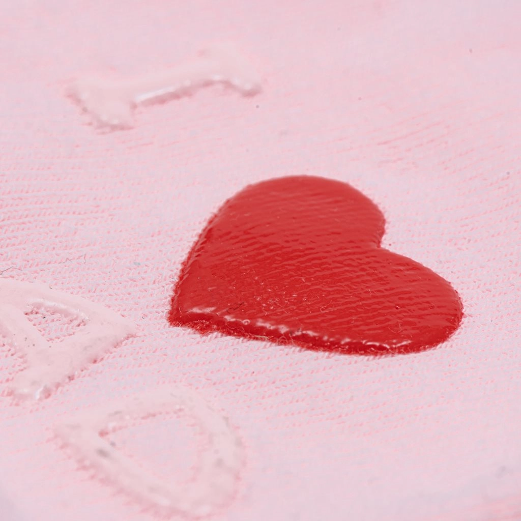 Stylowe różowe wykonanie z motywami I love Mum i I love Dad ucieszy dzieci i rodziców.