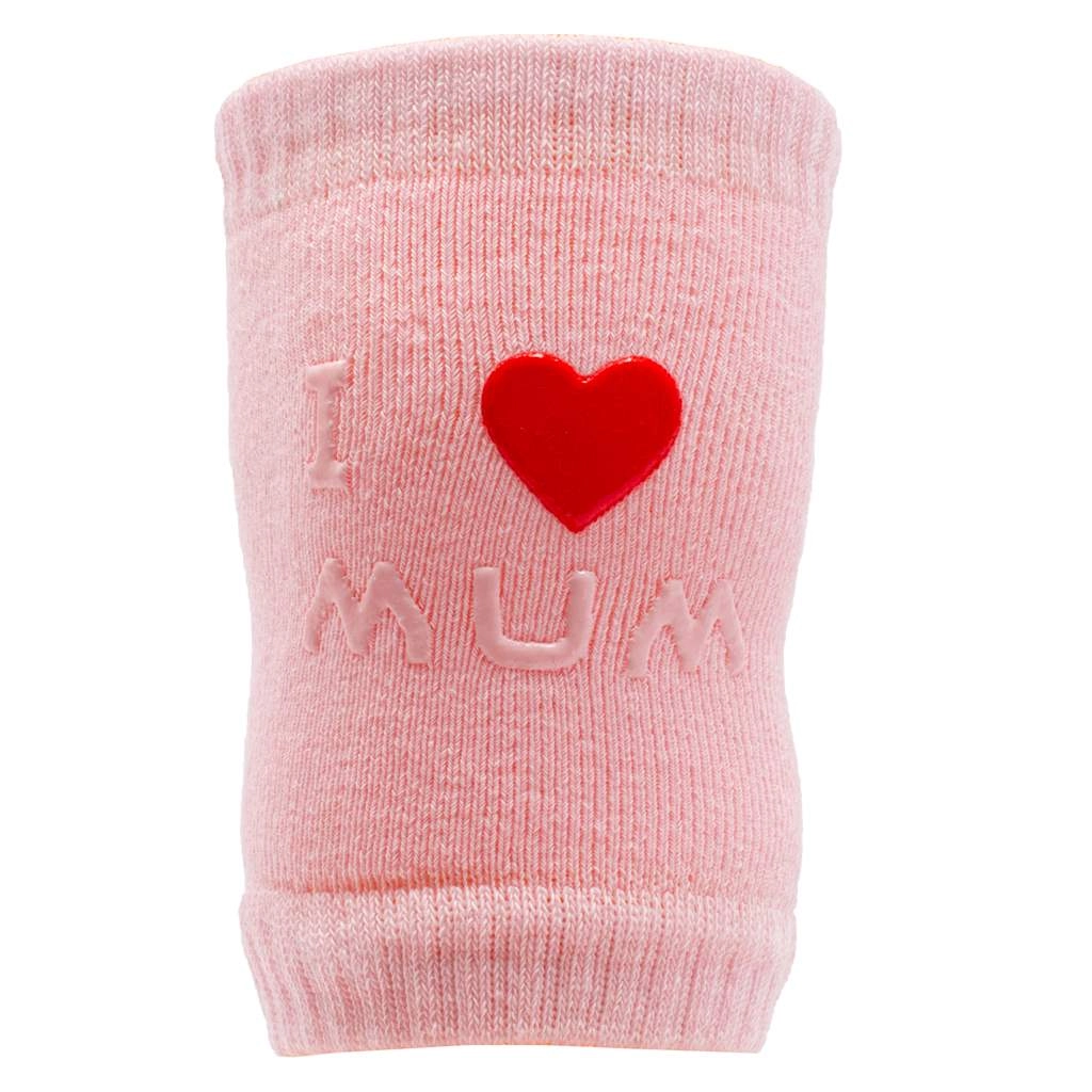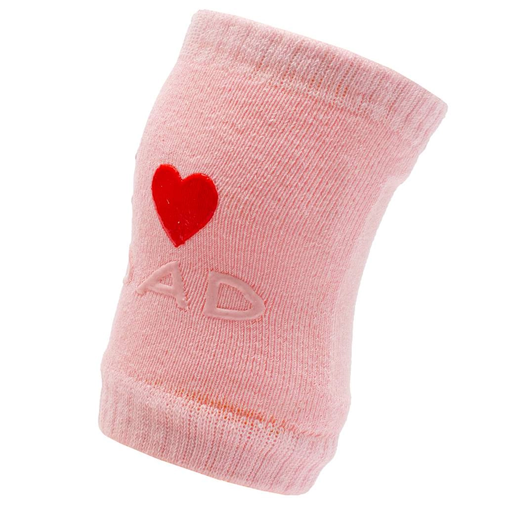 Miękkie dziecięce nakolanniki z antypoślizgiem chronią kolanka podczas raczkowania i zabawy. Dzięki elastycznym ściągaczom świetnie trzymają się na nóżce, są wygodne, oddychające i wykonane z wysokiej jakości materiału, który zachowuje kształt i nie farbuje. Uniwersalny rozmiar, różowe wykonanie z motywami I love Mum i I love Dad.