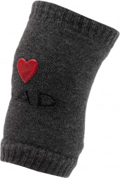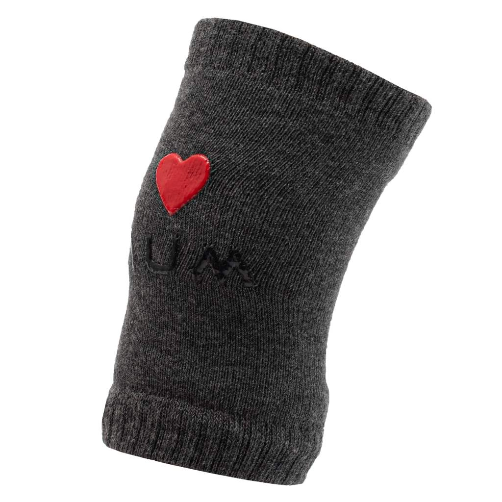 Wykonane z wysokiej jakości, formowo stabilnego materiału (80% bawełna, 16% poliamid, 4% elastan), który jest przyjemny dla dziecięcej skóry i nie farbuje. Uniwersalny rozmiar łatwo dopasowuje się do drobnych nóżek. W opakowaniu znajdziesz 1 parę nakolanników w kolorze grafitowym z uroczym motywem I ♥ MUM oraz I ♥ DAD.