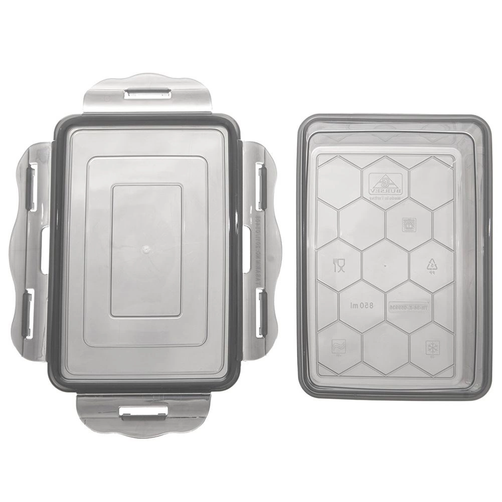 Praktyczny i wytrzymały pojemnik na żywność o pojemności 850 ml w eleganckim, ciemnoszarym kolorze. Dzięki czterem solidnym klipsom i silikonowej uszczelce jest całkowicie szczelny, utrzymuje świeżość żywności i chroni ją przed wilgocią. Wykonany z bezpiecznego plastiku bez BPA, odpowiedni do kuchenki mikrofalowej (bez pokrywki), zmywarki, lodówki i zamrażarki w zakresie temperatur od -25 °C do +95 °C.