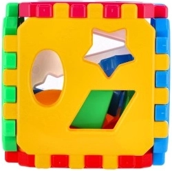 Klasyczna kostka do sortowania dla najmłodszych rozwija małą motorykę, logiczne myślenie oraz rozpoznawanie kształtów i kolorów. Kolorowe elementy wkłada się w odpowiadające im otwory, a poszczególne ścianki kostki są łączone zębatymi krawędziami dla łatwego składania. Idealna zabawka dydaktyczna dla dzieci od 12 miesięcy.