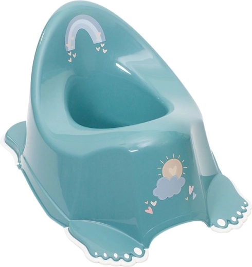 Grający dziecięcy nocnik Meteo w turkusowym kolorze to świetny pomocnik w nauce nawyków higienicznych. Dzięki wysokiemu oparciu i szerokiemu siedzisku zapewnia dzieciom wygodne i stabilne siedzenie. Powłoka antypoślizgowa na spodzie pomaga zapobiegać przesuwaniu i zwiększa bezpieczeństwo podczas użytkowania.