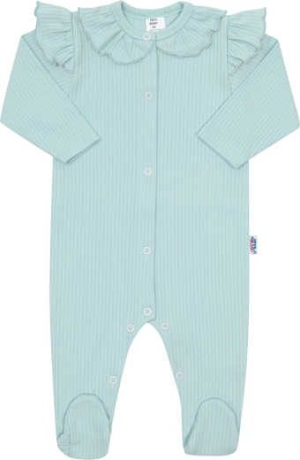 Ten pajacyk NEW BABY Stripes w lodowym niebieskim kolorze został zaprojektowany z myślą o maksymalnym komforcie i bezpieczeństwie maluszka. Wysokiej jakości bawełniana dzianina jest przyjemna w dotyku, oddychająca i nie podrażnia wrażliwej skóry dziecka. Praktyczne napy na całej długości i między nóżkami ułatwiają ubieranie oraz szybkie przewijanie.