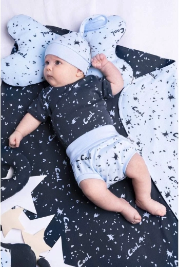 Stylowa niemowlęca czapeczka w formie chustki z elastycznym ściągaczem i nadrukiem zapewni Twojemu maluszkowi wygodę i delikatność przez cały dzień. Wykonana w 100% z bawełny, przyjaznej dla wrażliwej skóry dziecka.