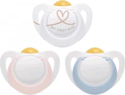 Materiał jest odporny na wysoką temperaturę, łatwy do mycia i przyjemny w ustach. System NUK Air zapewnia lepszą cyrkulację powietrza, aby delikatna skóra wokół ust mogła oddychać. Smoczek jest odpowiedni także przy karmieniu piersią – ułatwia naprzemienne karmienie piersią i uspokajanie smoczkiem.