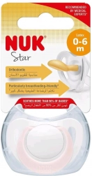 Smoczek NUK Star został zaprojektowany tak, aby respektować naturalne potrzeby ssania niemowlęcia, a jednocześnie wspierać zdrowy rozwój jamy ustnej. Miękka górna strefa delikatnie dopasowuje się do podniebienia, podczas gdy dolny kształt pozostawia miejsce na naturalne ruchy języka. Dzięki praktycznemu kółku z wysokiej jakości polipropylenu łatwo go chwycą nawet najmniejsze rączki.