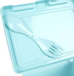 Podróżny sztuciec 14,5 cm (łyżka + widelec) jest schowany pod pokrywką, więc łatwo zabierzesz go wszędzie.