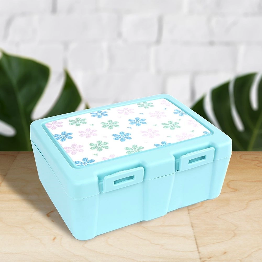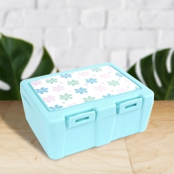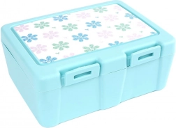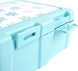 Stylowe pudełko śniadaniowe w niebieskim odcieniu z kwiatowym motywem na pokrywce utrzyma Twoje jedzenie przejrzyście rozdzielone i bezpiecznie zamknięte. Wewnętrzna przegroda tworzy dwie strefy dla różnych rodzajów potraw, a praktyczny spork 2 w 1 (łyżka + widelec) ma swoje miejsce pod pokrywką, więc zawsze będziesz mieć go pod ręką.