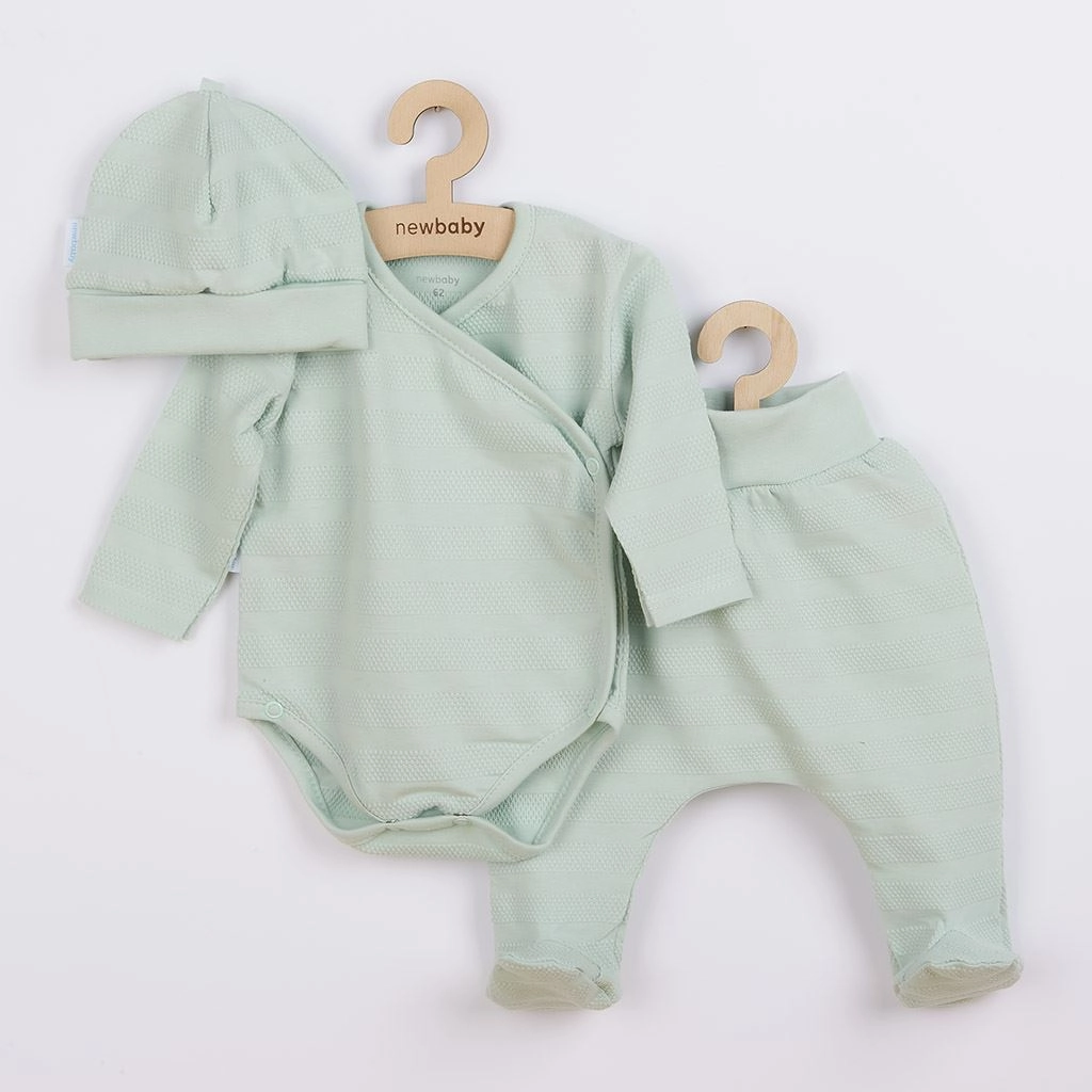 Cały zestaw z delikatnej 100% bawełny wyróżnia się atrakcyjną teksturowaną fakturą i jest zapakowany w praktyczne eko pudełko, dlatego świetnie sprawdzi się również jako miły prezent dla noworodka. Idealny wybór do szpitala i na pierwsze tygodnie w domu.