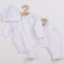 Ten delikatny i praktyczny zestaw dla noworodka został zaprojektowany z myślą o maksymalnym komforcie dziecka. Dzięki wysokiej jakości dzianinie bawełnianej jest przewiewny, miękki i odpowiedni także dla wrażliwej skóry. Body rozpinane na całej długości ułatwia ubieranie po porodzie, półśpiochy z szerokim elastycznym pasem nie uciskają brzuszka, a czapeczka z szerszym brzegiem dobrze trzyma się na główce.