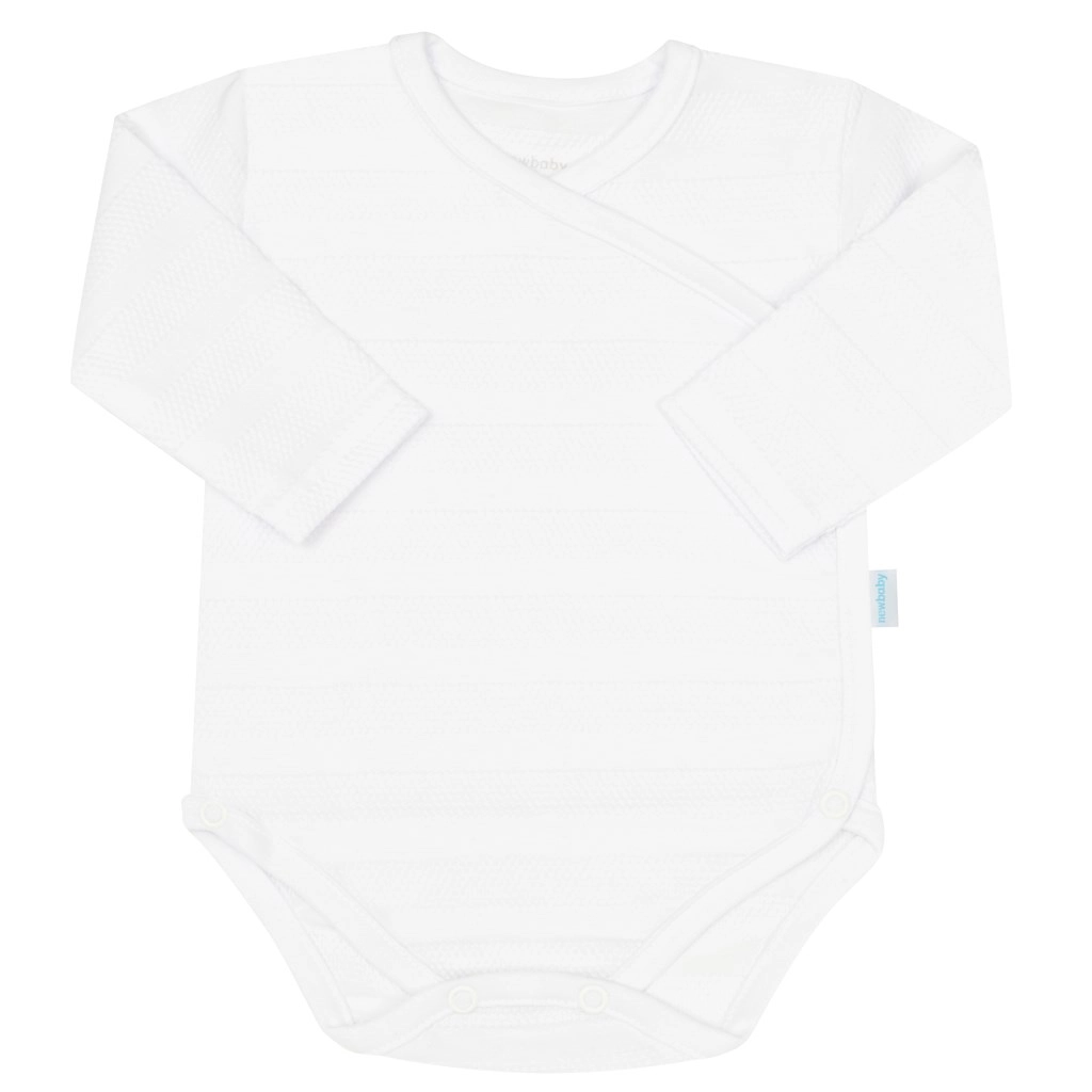 Zestaw obejmuje: w pełni rozpinane body z długim rękawem (boczne zapięcie na całej długości oraz między nóżkami), śpiochy (napy na ramiączkach i między nóżkami), półśpiochy, kaftanik zapinany na napy na całej długości, czapeczkę z szerszym ściągaczem, rękawiczki i buciki niemowlęce z szerszym mankietem. Wszystko utrzymane w czystej bieli i zapakowane w eko pudełko prezentowe.