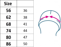 Czapeczka jest wyprofilowana na uszka i dzięki wiązaniu na sznureczki niezawodnie trzyma się nawet podczas aktywnego ruchu.