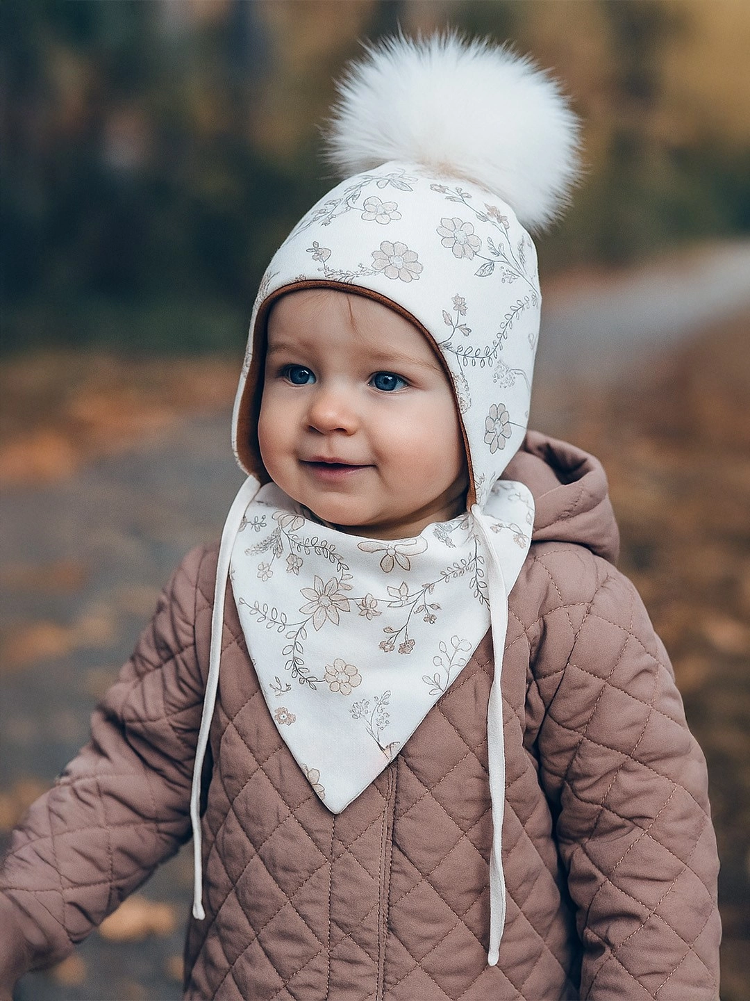 Zapewnij swojemu maluszkowi komfort i ochronę w chłodną pogodę. Zestaw NEW BABY Special One tworzą ocieplana czapeczka, która zakrywa uszka i dzięki wiązanym sznureczkom świetnie się trzyma, oraz dopasowana chustka na szyję z dwoma ustawieniami zapięcia. Delikatna tkanina z kwiatowym nadrukiem jest przyjemna w dotyku i jednocześnie stylowa.