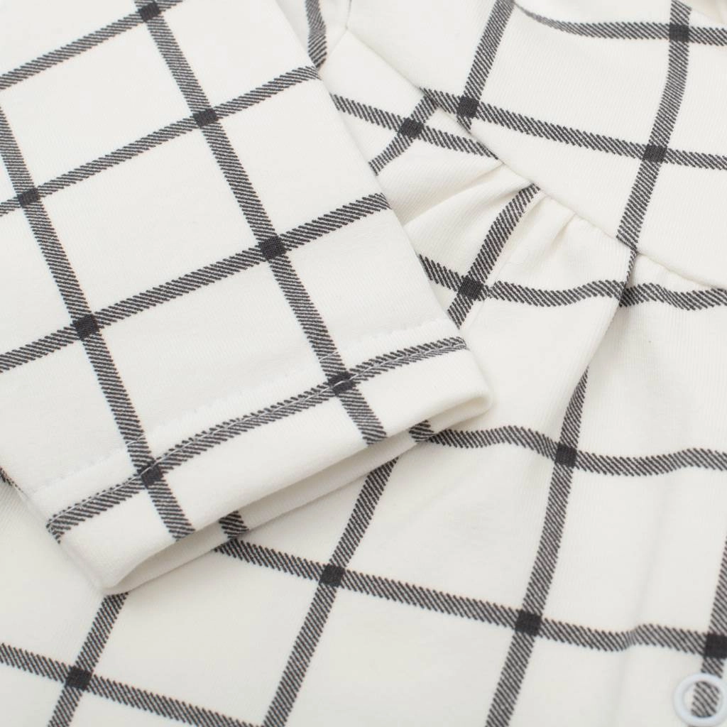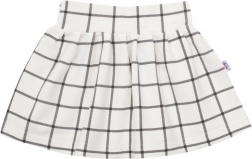 Bluza o rozkloszowanym kroju z kapturem ma nowoczesny kraciasty wzór i zapinana jest na napy na całej długości, co ułatwia ubieranie. Rozkloszowana spódniczka z elastycznym, szerszym pasem wygodnie trzyma się na miejscu i nie uciska. Komplet łatwo połączyć z rajstopami lub legginsami, sprawdzi się do przedszkola, na wizyty i rodzinne sesje zdjęciowe.