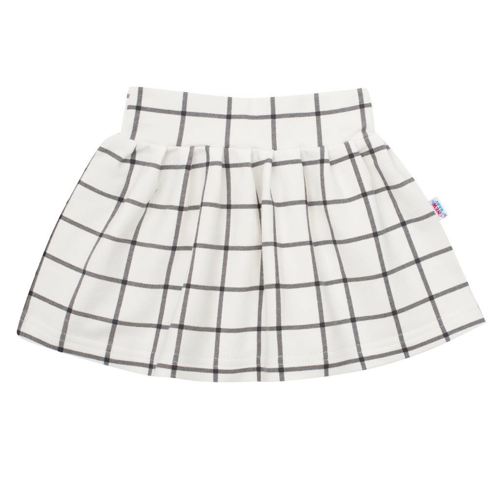 Obie części zdobi nowoczesny kraciasty wzór, który świetnie łączy się z jednokolorowymi koszulkami i rajstopami. Łatwe zapięcie na całej długości ułatwia przebieranie nawet najmłodszych dzieci, a szersza guma w pasie wygodnie utrzymuje spódniczkę na miejscu.