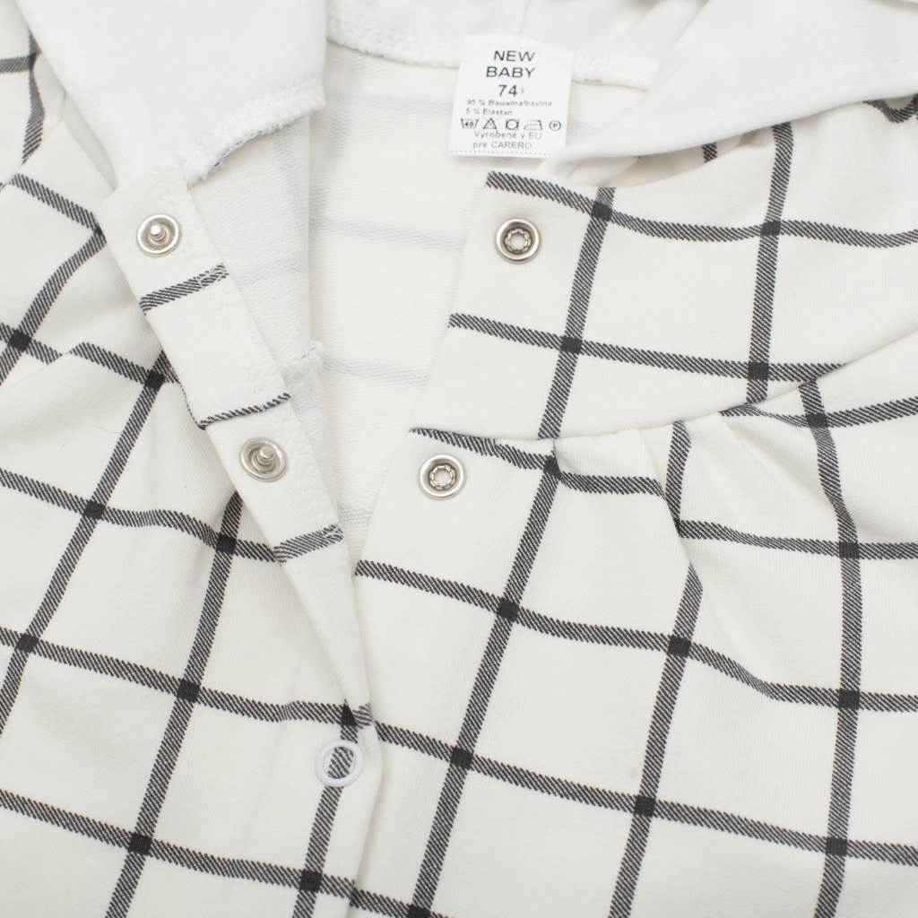 Biało‑szary kraciasty nadruk nadaje zestawowi nowoczesny wygląd i ułatwia łączenie z innymi elementami garderoby.