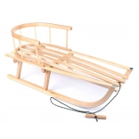 W zestawie znajduje się wszystko, czego potrzebujesz do natychmiastowej jazdy: sanki, odpinane oparcie oraz linka do ciągnięcia z drewnianą rączką do łatwego prowadzenia lub wciągania pod górę. Praktyczna konstrukcja i ponadstandardowy udźwig do 100 kg zapewniają długą trwałość i stabilność.