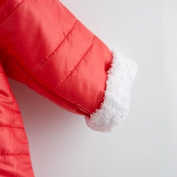 Dzięki antyalergicznemu wypełnieniu i miękkiemu wnętrzu kombinezon świetnie sprawdzi się na codzienne spacery zimą i jesienią. Odwijane rękawki pozwalają lepiej chronić rączki, a jednocześnie podkreślają miękką podszewkę.