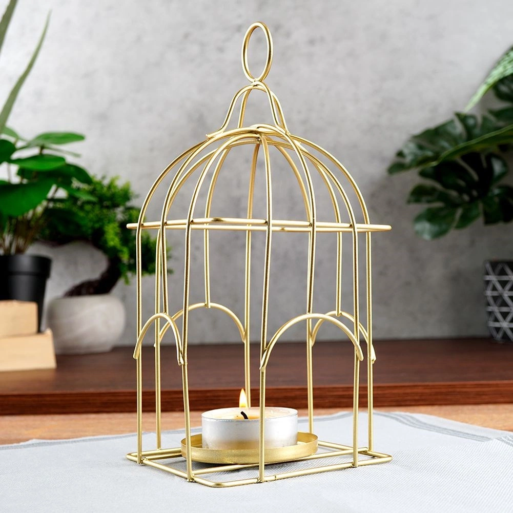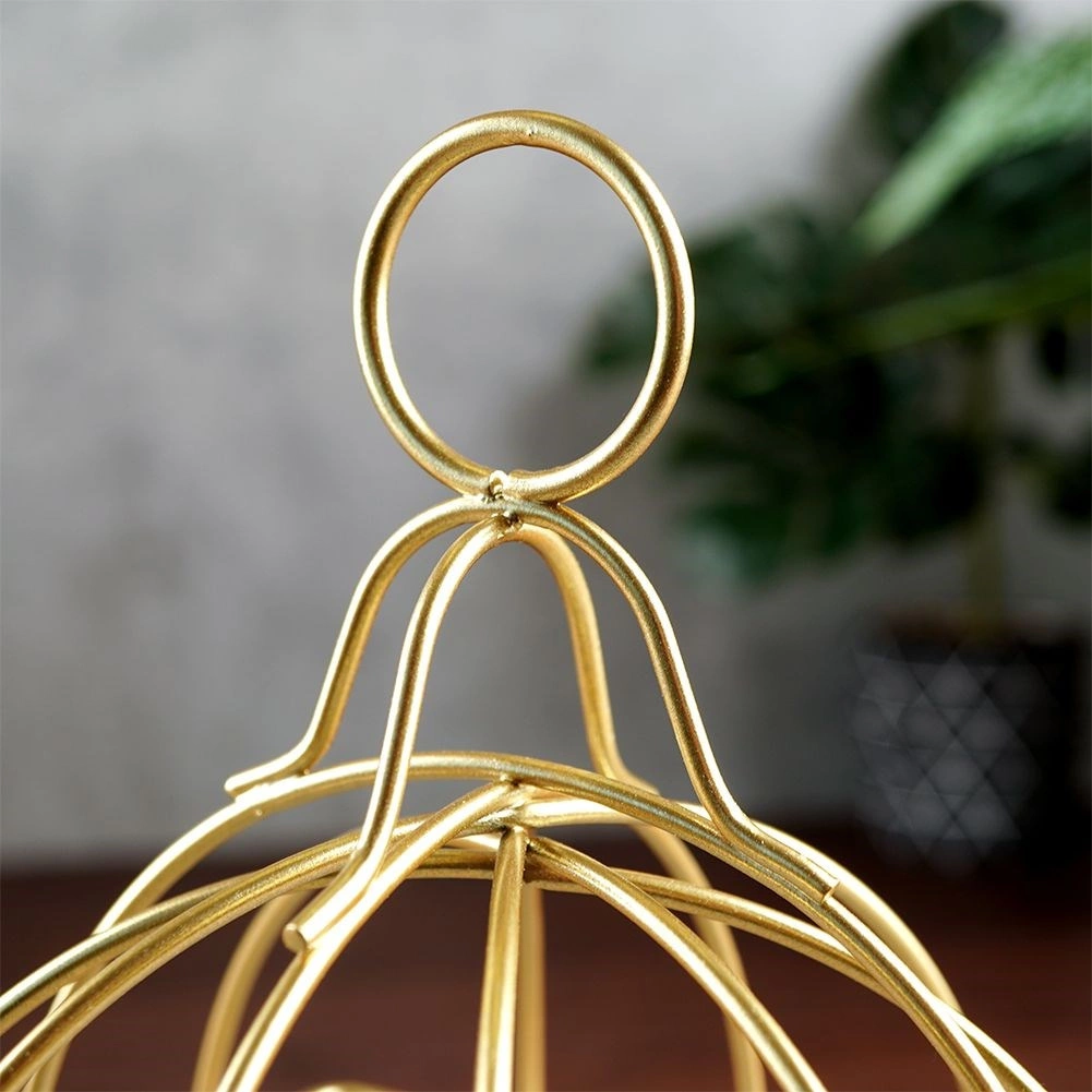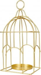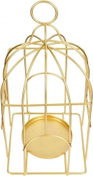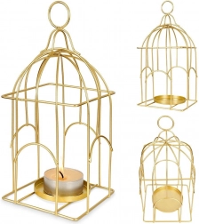 Elegancki lampion inspirowany kształtem klatki tworzy przytulną atmosferę miękkim światłem, a jednocześnie stanowi wyrazistą dekorację. Trwała metalowa rama ze złotym wykończeniem zapewnia długą żywotność i ponadczasowy wygląd, który świetnie prezentuje się na stole, komodzie czy półce.