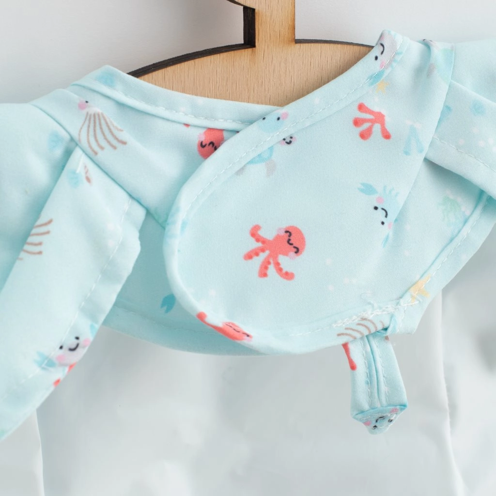 Praktyczna, dwuwarstwowa kieszeń wyłapuje okruszki i płyny, ułatwiając sprzątanie po każdym posiłku. Nowoczesne wzory i atrakcyjne kolory spodobają się małym elegantkom i rodzicom, którzy szukają funkcjonalnego i stylowego wyposażenia do codziennego użytku.