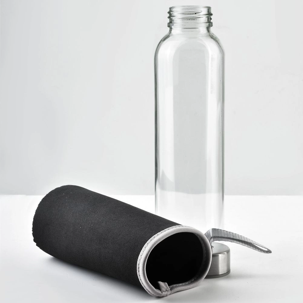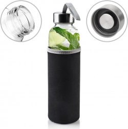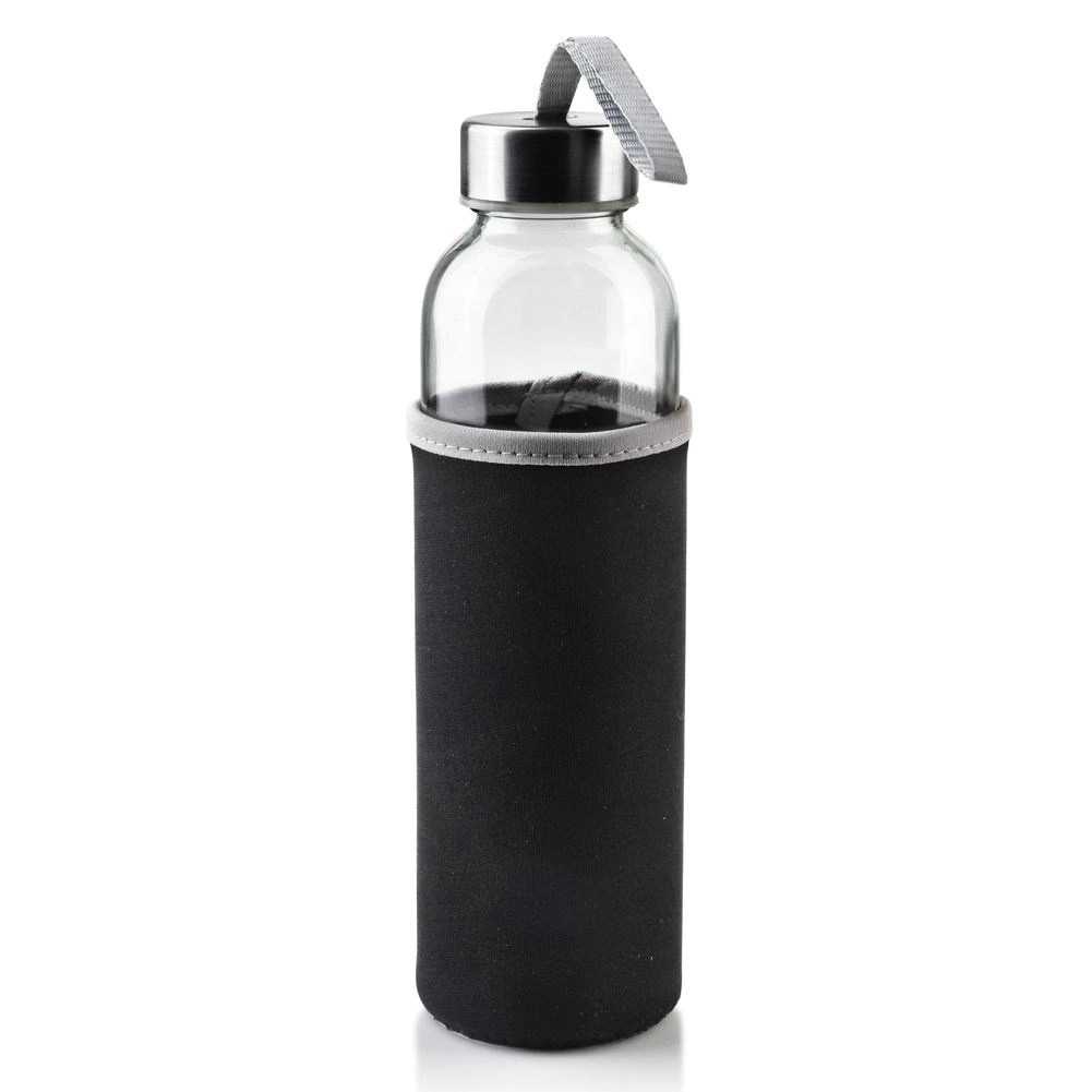 Szklana butelka na wodę z neoprenowym pokrowcem 490 ml czarna