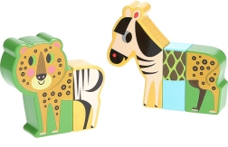 Drewniane puzzle Wesołe safari oferują dzieciom od 2 lat nieco inną zabawę: każde zwierzątko składa się z masywnych elementów z ukrytymi magnesami, które gładko do siebie przylegają. Części można wymieniać między poszczególnymi zwierzętami, tworząc zabawne „hybrydy”, które pobudzają wyobraźnię i ciekawość.
