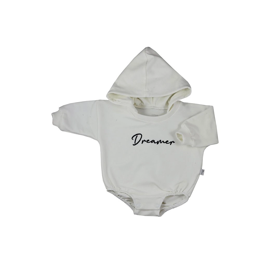 Stylowe i praktyczne body dla niemowląt, które dzięki długim rękawom, kapturowi oraz wygodnemu zapięciu na napy między nóżkami utrzyma Twoje dziecko w cieple i komforcie. Miękka dresówka z 96% bawełny i 4% elastanu jest oddychająca i elastyczna, a baggy krój zapewnia swobodę ruchów. Napis Dreamer dodaje nowoczesnego wyglądu.